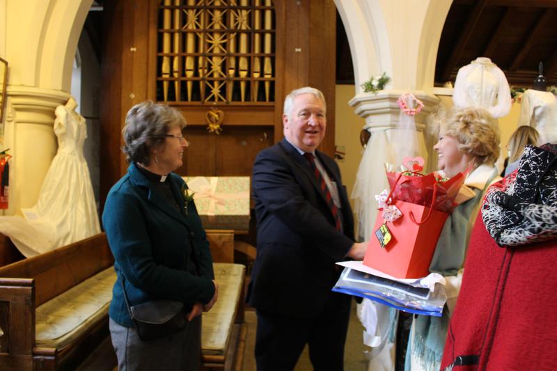 Sunday February 14th - St. Valentine's Day - (L) Churchwarden Beverley Burgess welcomes Gbola Adeleke, Mayor of Dacorum and his wife at the church door prior to the Service of Thanksgiving for Marriage. (R) The Vicar and Churchwarden Mike Hawtin welcome the Mayor and Mayoress once inside the church. Photographs by Barbara Le Talec.