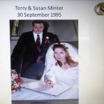 BELOW: Many local residents and Members of Holy Trinity's congregation had a great deal of enjoyment out of trying to work out who of their friends and acquaintances were depicted on the board in the Trinity Room showing the wedding photos of those of us from Holy Trinity who had married elsewhere. Mike Hawtin put the whole thing together, and for some reason put Martin & my photo right in the centre!