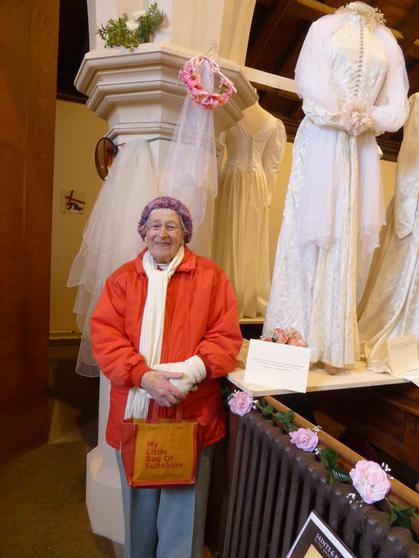 RIGHT: Maureen Bellett displaying the Regency (1810) gown at St. Mary's Church Redbourn many years ago.