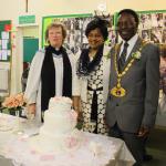 ABOVE LEFT: Revd Lizzie Hood Welcomes Dacorum's Mayor Gbola Adeleke and his wife.