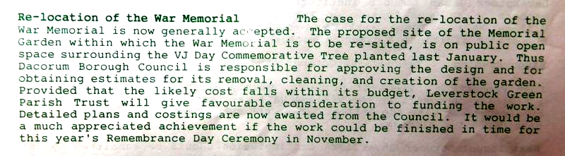 Since the end of WW1, Leverstock Green has had several memorials to that conflict and those who fought for our country at that time, and more especially to remember those who failed to return as they paid the ultimate sacrifice - their death.